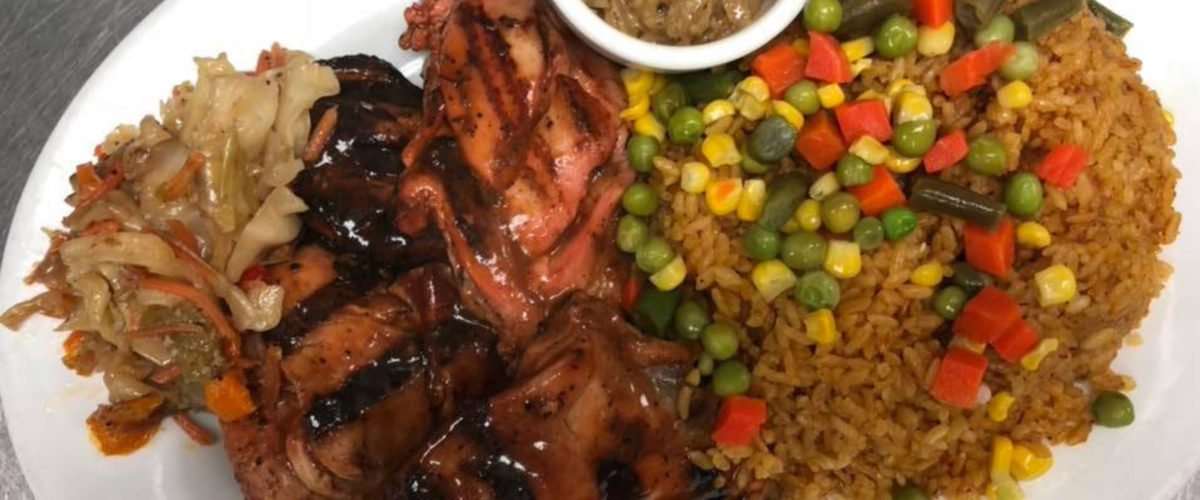 Jamaican Jerk Chicken cooked to perfection. White meat only $3 extra.