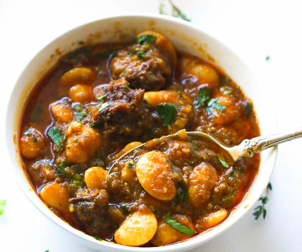 Stew Cooked with large lima beans and potatoes.